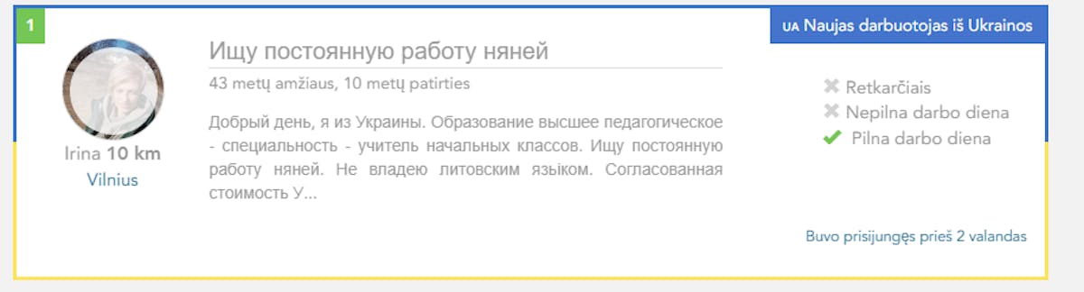 Ieškodamos vaikų priežiūros, namų tvarkymo, gyvūnų priežiūros ar slaugos paslaugų teikėjo, šeimos, naudodamos paieškos filtrą, galės nustatyti Ukrainiečių profilius ir paremti juos pasinaudojant jų paslaugomis.